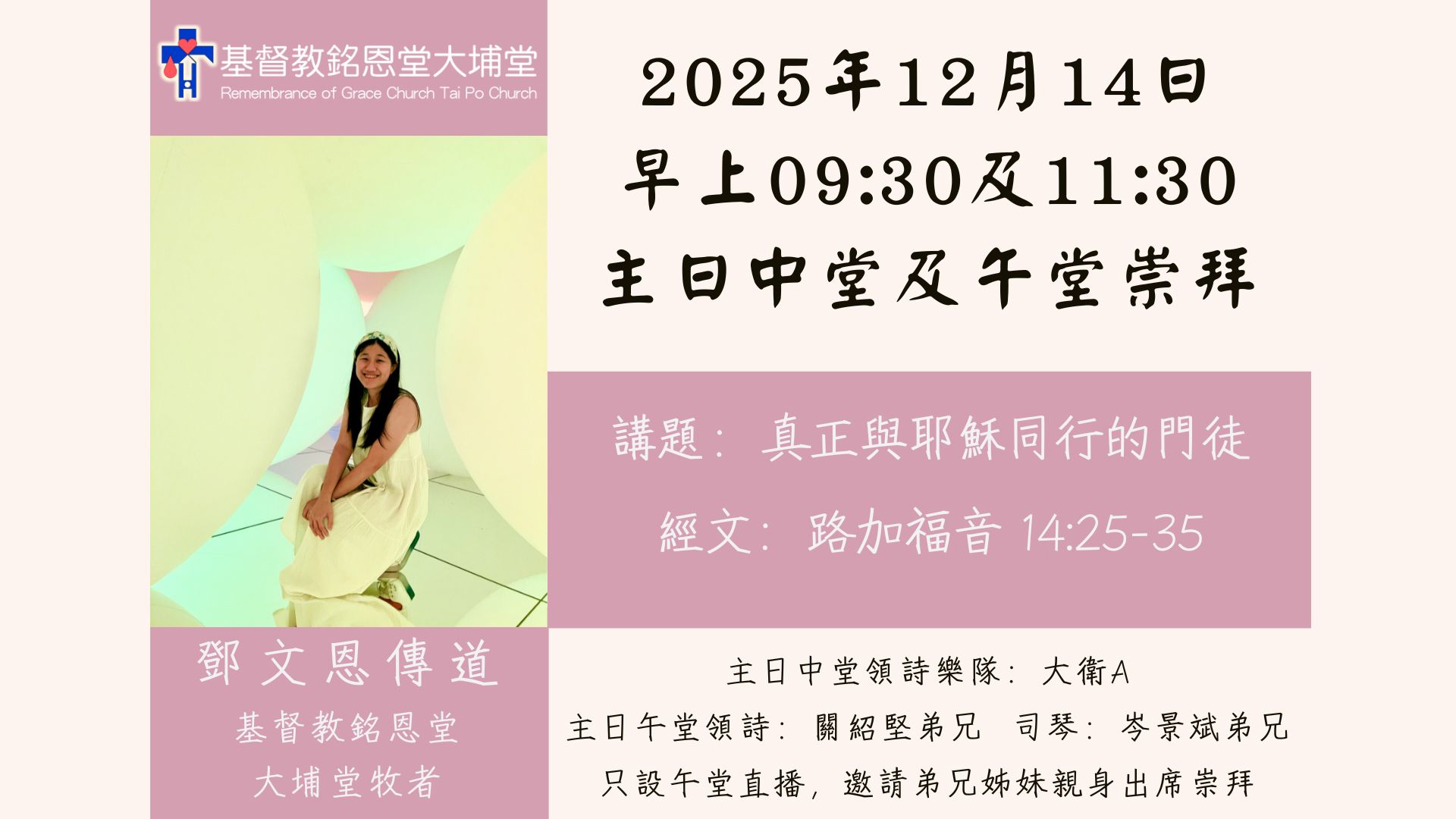 主日中堂及午堂 | 鄧文恩傳道 | 2025年12月14日