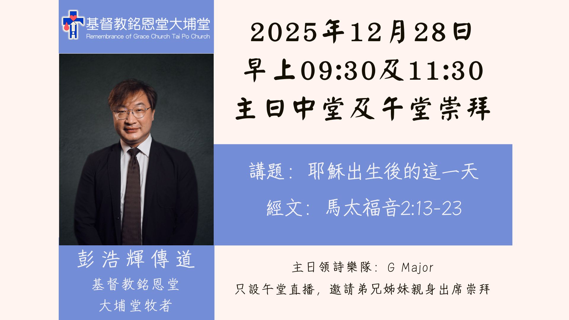 主日中堂及午堂 | 彭浩輝傳道 | 2025年12月28日