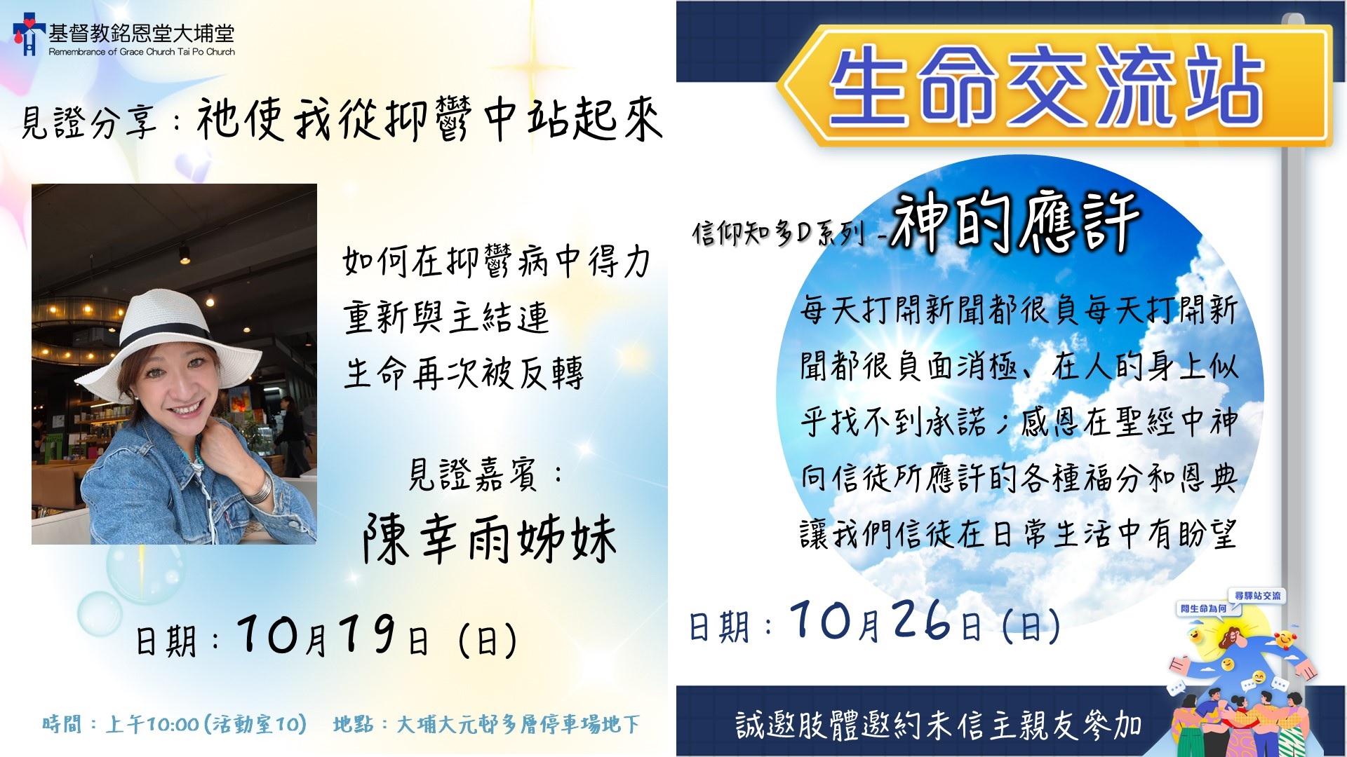 [見證分享]10月19日(日) 見證嘉賓:陳幸雨姊妹 主題:祂使我從抑鬱中站起來