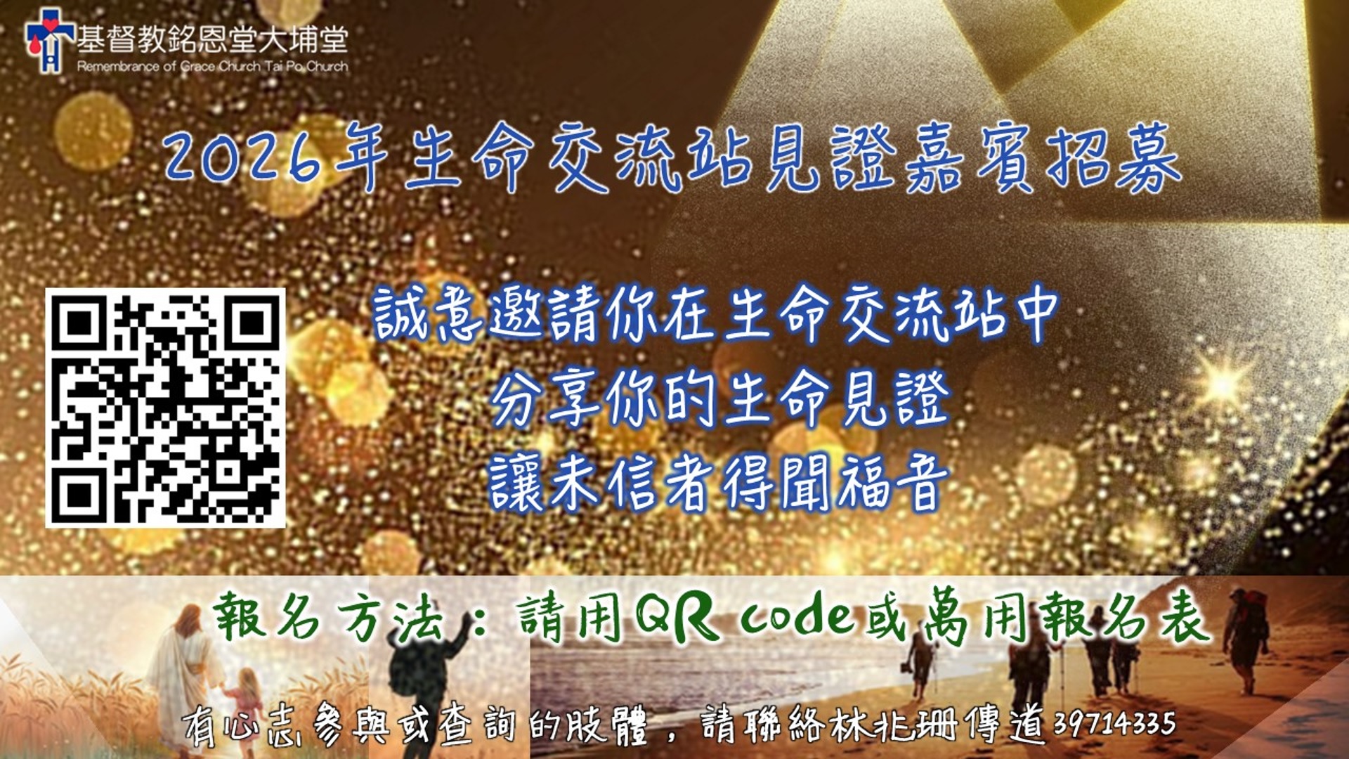誠意邀請你在生命交流站中分享你的生命見證,讓未信者得聞福音。