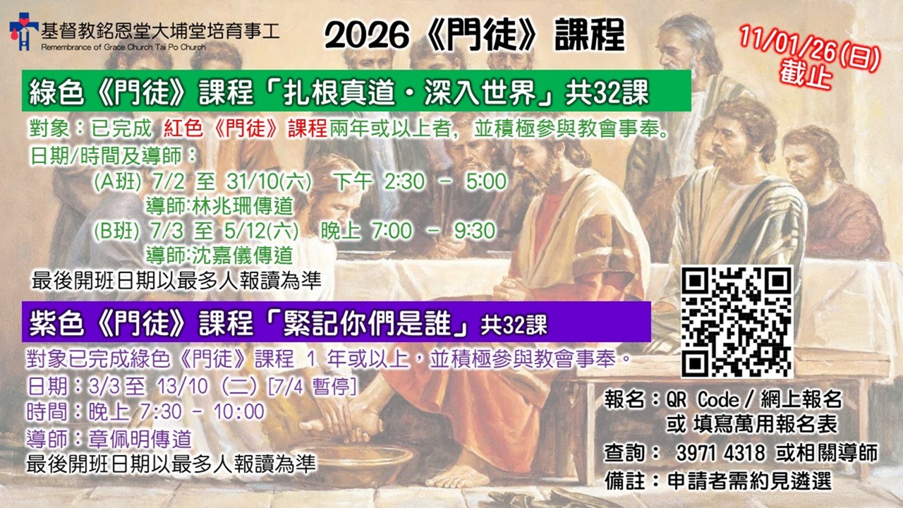 2026《門徒》課程招生
